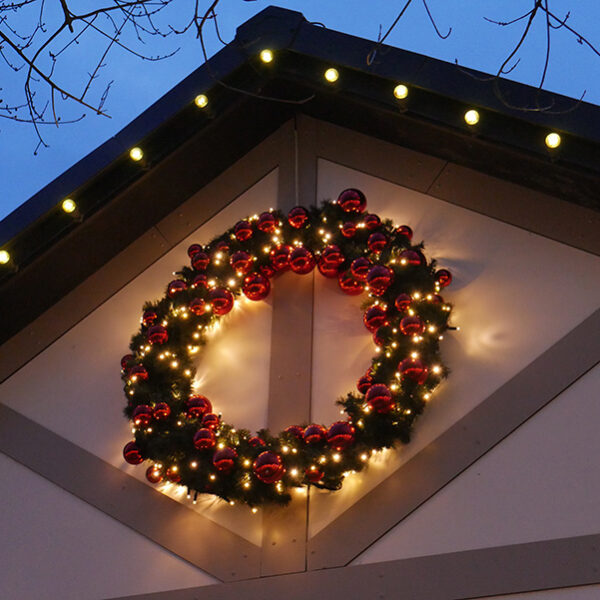One of our biggest Christmas Lighting Projects at Cheshire Oaks. Beautiful Crystalline Stag Sculpture greeting customers as they enter the Shopping Centre. Garlands and Tree Lights decorating every building and street. Last year we created a bespoke lighting design to illuminate the red telephone box. Around the centre we had Photo Opportunity Garlands and Sleighs that encourage customers and visitors to share pics on social media.