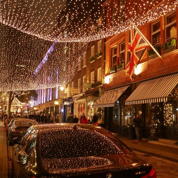 Simply Stunning!!! Our premium LEDs, crafted by MK Illumination, now bring an enchanting glow to Seven Dials, a vibrant corner of Covent Garden renowned for its historic star-shaped layout. This stunning display features 155,000 light points that weave through the streets, celebrating the iconic Seven Dials Monument while casting a warm, inviting glow over the bustling Neal’s Yard.
