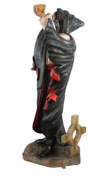 Step into a creepy and nightmarish world with our Dracula Fibreglass prop. This structure stands tall at 190 cm and boasts a depth of 85 cm, making it perfect for both indoor and outdoor settings. Perfect addition for any scare attraction or Halloween event. Boasting photo opportunities for social media sharing. Its floor self-standing design ensures stability and grandeur. Crafted with precision, its dimensions of 95 cm width and packaged weight of 115kg highlight its robust construction. Experience the unparalleled durability and aesthetic charm of fibreglass with Dracula.