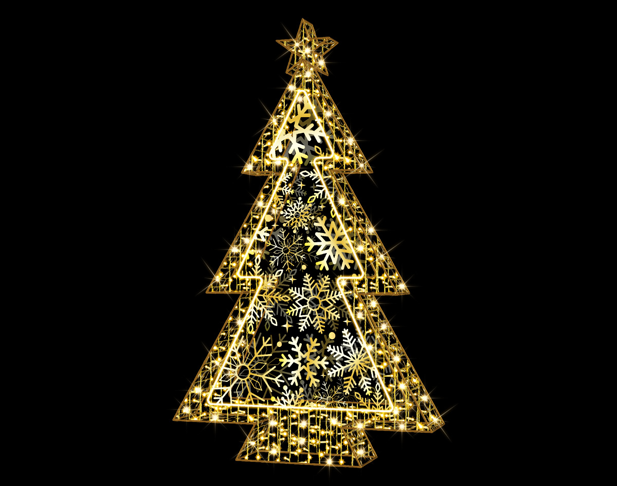 Introducing our new Golden Snowflake Tree, a stunning centrepiece designed to elevate any event or venue with its gold finished aluminium frame and warm white LEDs. Standing tall at an impressive 230 cm, this floor standing tree is constructed from premium aluminium, ensuring both elegance and durability. Its warm white bulbs cast a soft, inviting glow, perfect for lobbies, retail, hospitality venues and shops. Rated IP65 for weather resistance, this beautiful tree is ideal for both indoor and outdoor installations.