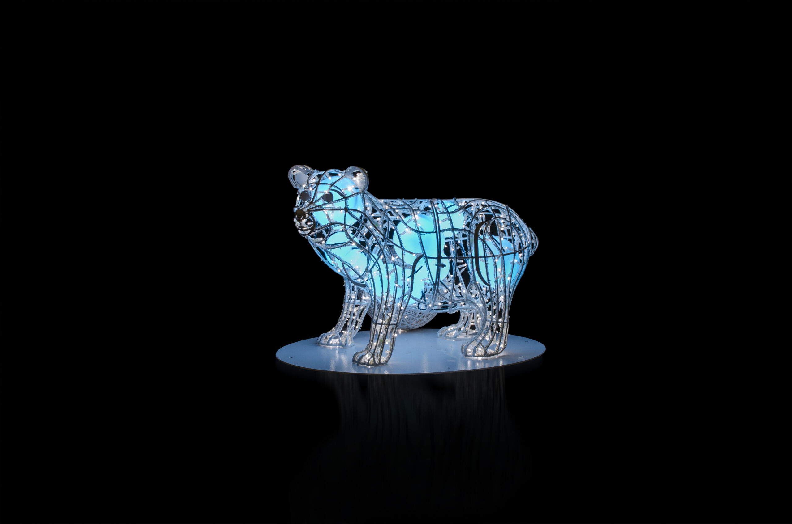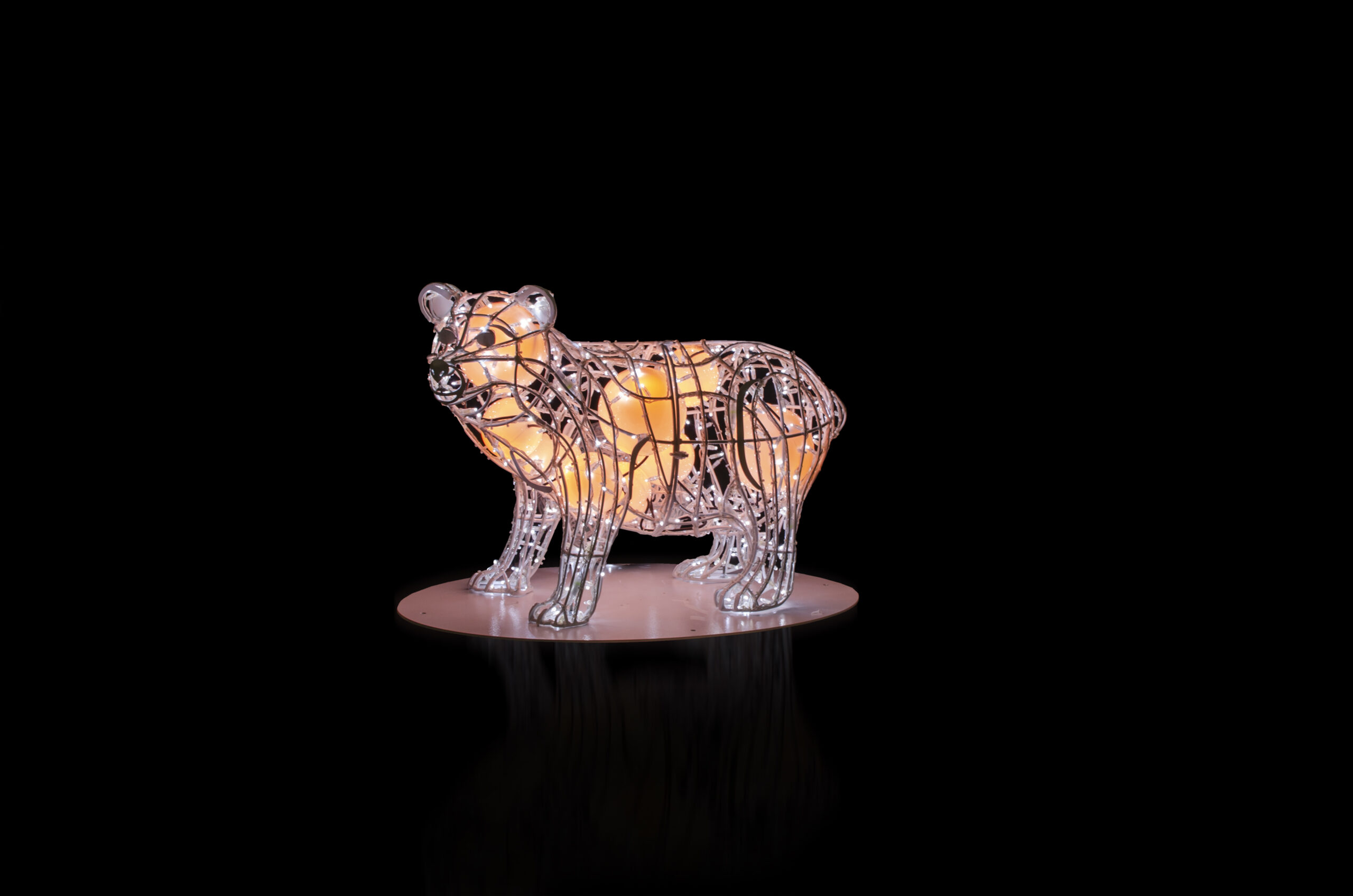 Step into a world of wonder with the Ice Bear Puppy, a floor-standing adorable light sculpture that transforms any space into an unforgettable photo opportunity. Crafted from durable aluminium and standing an impressive 85 cm tall, this eye-catching feature boasts both brilliant white LEDs and our i-balls which are programmable light changing orbs. With its generous dimensions of 1.2 x 0.8 x 0.85 metres, the Ice Bear Puppy is designed to be the centrepiece of any winter wonderland or Christmas display, captivating guests both young and old. Its IP67 rating makes it suitable for both indoor and outdoor use, while the self-standing mount offers effortless placement wherever inspiration strikes. Operating at 36V with 52 watts of power, this unique piece delivers energy-efficient brilliance without the need for a transformer.